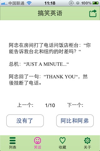 实时查看网络各类笑话,并可以随时随地将喜爱的笑话收藏到本地和分享到新浪,腾讯微博等