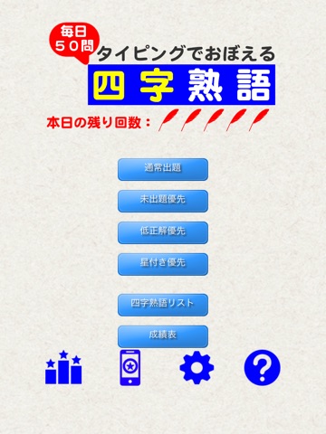 毎日50問ずつプレイして、四字熟語を集めよう!