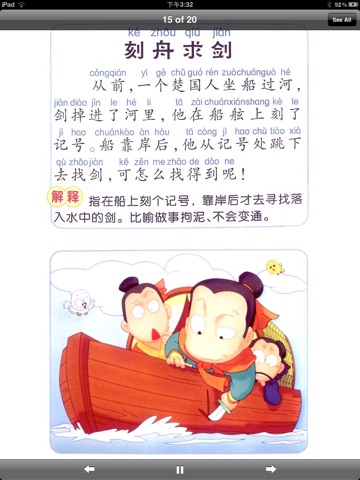 24个经典儿童成语故事,配上精美的图画、文字和拼音,以及可爱的童声配音,是家长和孩子必不可少学习娱乐工具!