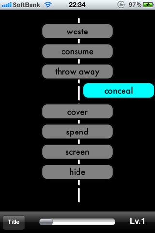 -画面に複数の単語・熟語が表示されますので、それにタッチして移動させ、類似の意味を持つ単語・熟語同士をグループにするという単純な操作を繰り返し行うことにより、知らず知らずのうちに英熟語に関する知識が増えているはずです。