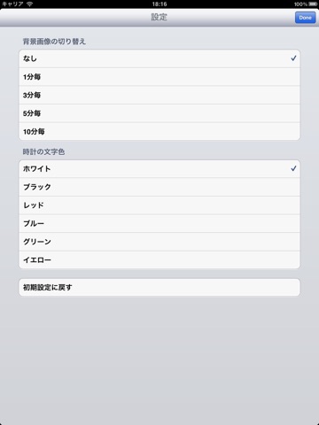 時計の文字の色や配置、画像の切り替わり速度も設定が可能です。