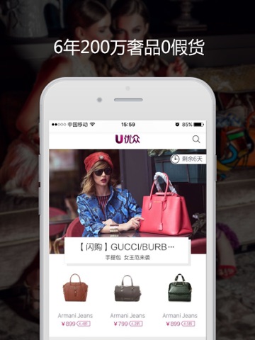 每日限量奢侈品秒杀、APP特卖场!