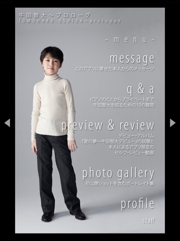 このアプリ『牛田智大~プロローグ』は、そんな彼と彼のアルバム『愛の夢~牛田智大デビュー』の魅力を知るためのアプリ。