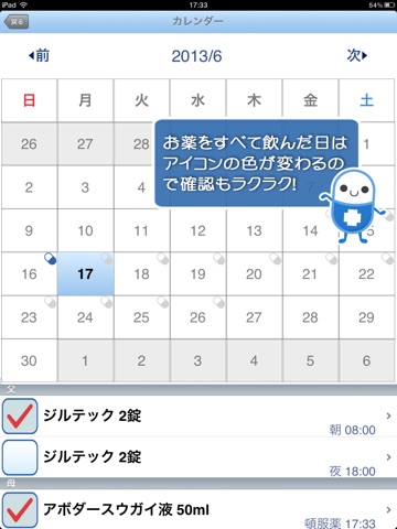 ・カレンダーで服薬履歴が一目でわかるようになりました。
