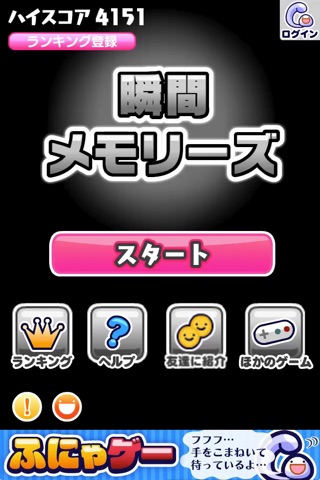 一瞬だけ表示されるキャラの位置を覚えて、タッチしよう。1回で間違えるとゲームオーバー!