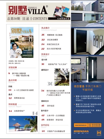 《别墅》杂志创刊于2003年,是中国内地集居住文化与国际高档品牌消费于一体的顶级杂志之一。精准、高端已成为我们的最大特色。2007年,我们又推出了大别墅网及《别墅》电子杂志,进一步提升了杂志的品牌影响力。通过《别墅》及《别墅》电子杂志和大别墅网这三个高端媒体平台的整合传播,为合作伙伴全方位打造企业品牌形象,并达到最终实现品牌推广及销售的目的。《别墅》杂志自出版以来深受高端人士的喜爱。目前发行于别墅小区、售楼处、五星级大酒店、高端俱乐部、会所等高端场所,另外还有VIP数据发行等。《别墅》电子版,在线阅读和下载量均居前茅 ,被评为“最具影响力百强期刊”及“2013年度最受读者欢迎期刊TOP100"。