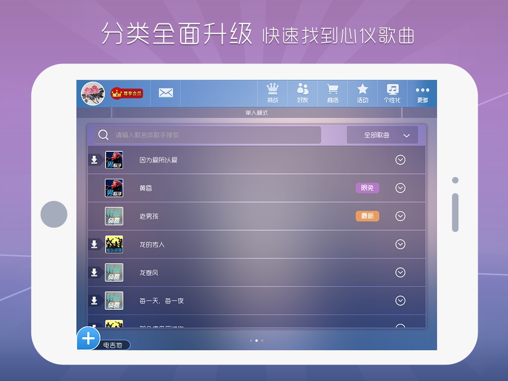 ——庞大歌曲库,千首钢琴曲,从流行到古典,应有尽有。