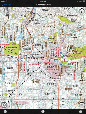 1. GPS機能を使用するアプリケーションであるため、iPod TouchやiPad WiFiモデルでのご使用の場合は、現在地の表示精度がよくない場合があります。