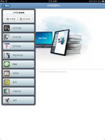PC환경과 동일한 수강과목을 모바일을 통해 복습할 수 있으며 강의듣기 및 공지사항, 쪽지 등 다양한 학습활동을 모바일에서 이용할 수 있습니다.
