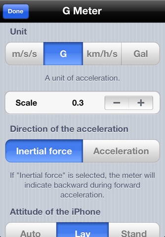 This app calculates the vertical and the horizontal acceleration and displays them separately.