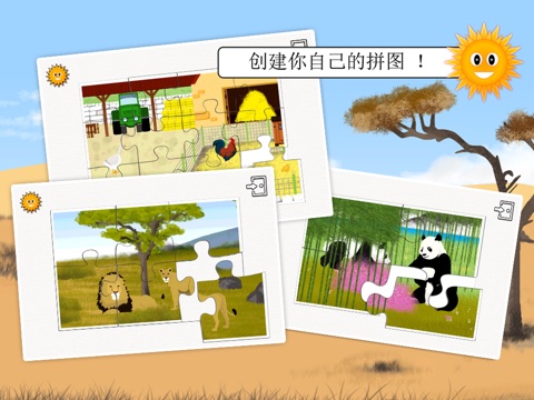 - "Make a jigsaw": the child is able to make jigsaws with the camera (4/6/12/20 pieces on iPhone, up to 42 pieces on iPad).