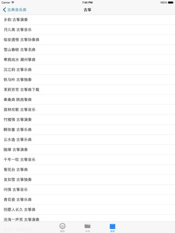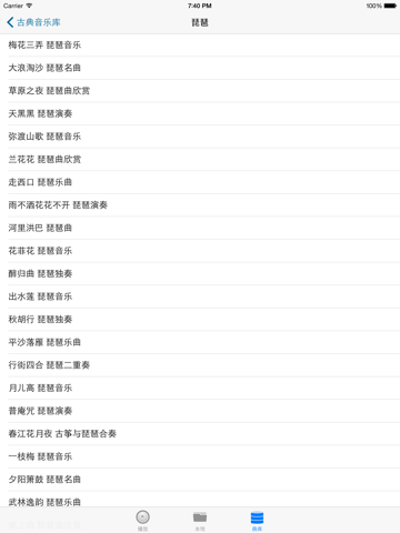 匯集上萬曲中國古典音樂, 囊括所有中國古典名曲。收錄古箏、笛子、二胡、古琴、琵琶、民樂合奏、吹打樂、揚琴、洞簫、葫蘆絲、巴烏、絲竹音樂、塤、嗩吶、馬頭琴、笙、廣東音樂、中國南音、佛教-