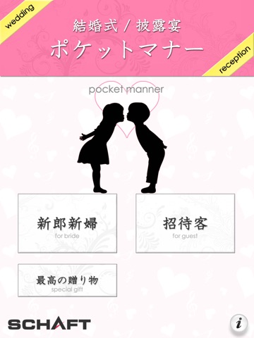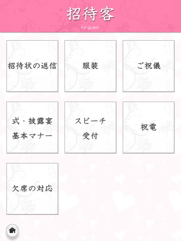 本アプリは、このような時に使える、式や披露宴、二次会等でのマナーをカテゴリ別にまとめまたデジタルブックです。またマナーだけではなく、結婚式の準備で必要となる知識やノウハウも詰め込んであります。iPhone/iPadのネイティブアプリになっていますので、ご自宅や出先でぜひご活用下さい!