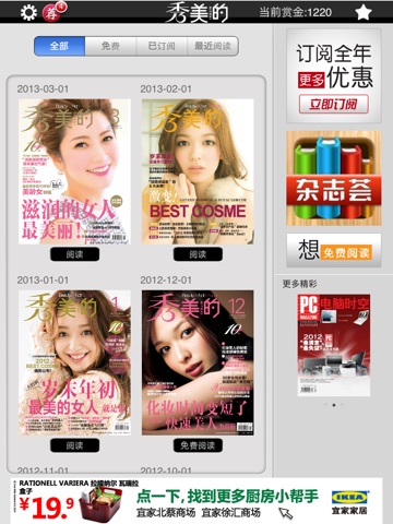 4、只需购买一次,您就可以在所有的iPad设备上获取已订阅或购买的杂志