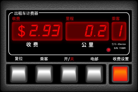 提示:因为需要搜索GPS 信号,App 软件在刚启动的时候可能会有少许缓慢. 当软件找到并锁定到好的信号后, 红色的指示灯会发亮, 而且App 会准确和及时地更新收费和里程数.