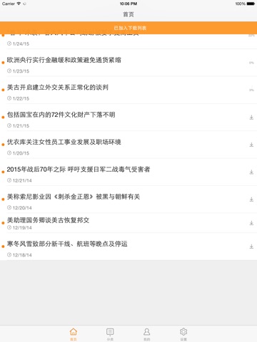 1.支持在线更新功能,服务器端每周进行1次更新(我们会尽量保证新闻的及时准确性),用户可以随时随地练习听力、阅读