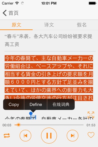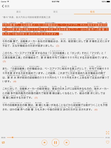 3.文章自动滚屏,当前句子高亮显示(原文与译文同步高亮显示),正在学习内容一目了然
