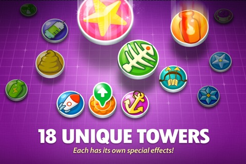 *18 unique towers like the Fishbone, Sunflower, Poopoo and Anchor Bomb towers for you to discover!