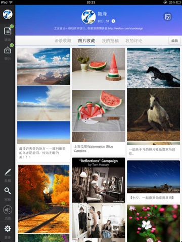 精彩齐共享:极其方便的将语录分享给新浪/腾讯微博粉丝与人人网/开心网好友。