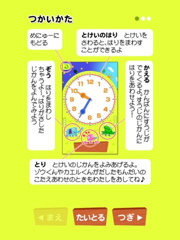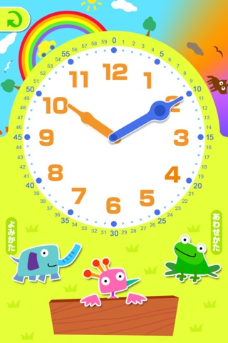 針が勝手に動いて止まるので、何時を指しているのか、お子さんに言ってもらいましょう。お父さんやお母さんも一緒に答え合わせしてあげてくださいね。