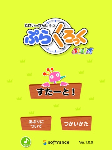 「ぷらくろっく」は、時計の読み方を覚えるためのアプリです。簡単な操作で楽しく学習することができます。 音声で時間を読み上げたり、問題を出したりする機能の他に、更に5つのモードが用意されているので、お子様のレベルに合った学習をすることができます。
