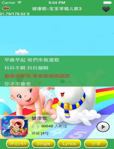 The baby learn to sing songs, is a childrens poetry, its concise statement, the structure is short, beautiful rhythm, rhythm clear, easy to read, easy to pronounce, deep love for children. A writer of childrens literature once said "childrens knowledge treasure bag, is the Pearl of human language......" Therefore, childrens songs are good for learning languages and are taught in various ways.