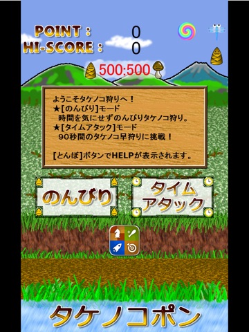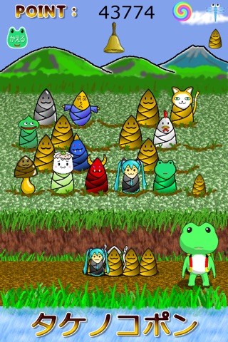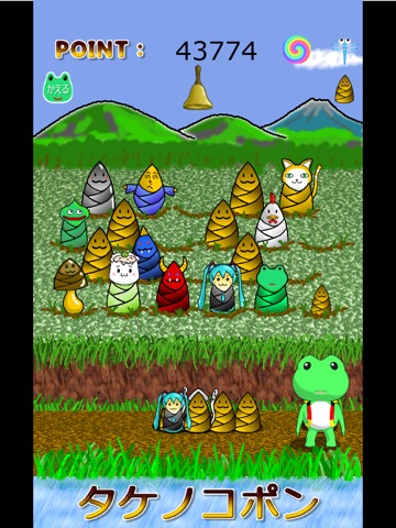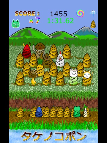 にょきにょき生えてくるタケノコをどんどん狩っていきましょう。狩りのコツは、タケノコの顔のあたりをタッチしてゆっくり引き上げること(タケノコが完全に生えてからでないと狩ることはできません)!