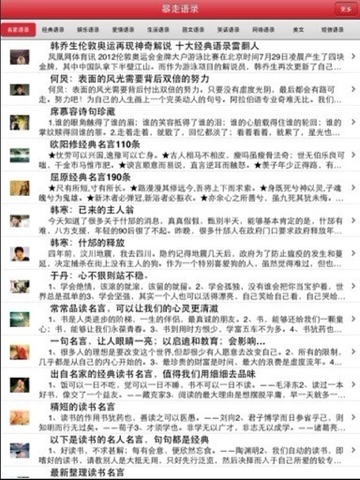 ★类别选择多样:名家语录、经典语录、娱乐语录、爱情语录、图文语录、笑话语录、网络语录、短信语录