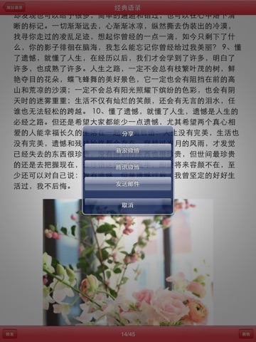 | 7 | 精辟语录(微博、微信上最犀利的网友言论,让我们天天读些发人深省的句子,去哪儿都要做有内涵的人) | 15 |