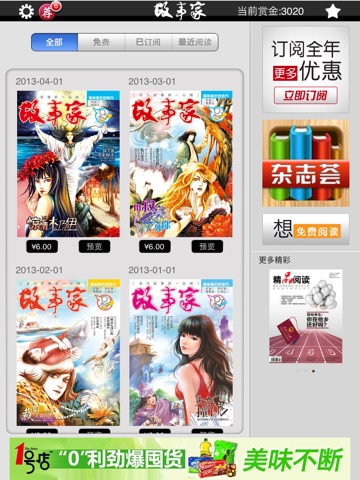 4、只需支付一次,您就可以在所有的iPad设备上获取已订阅或购买的杂志