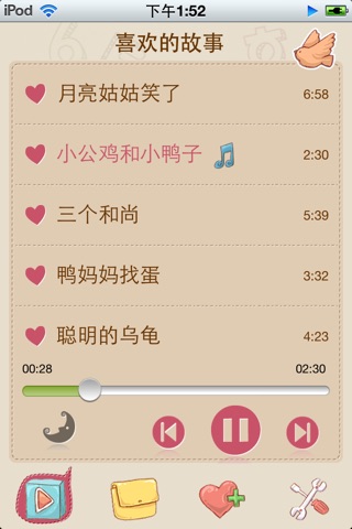 宝宝故事,已有100万妈妈正在使用,累积故事播放已经达8000万次!长期位于android、安智、google电子市场同类软件TOP10。如今IOS版全新上线,推荐所有妈妈免费试用!1、安全,绿色。2、故事齐全,定时更新。3、专家讲读。4、发展儿童智力,帮助儿童学习。5、爸爸妈妈更省心,用最简单的方式增加亲子互动。