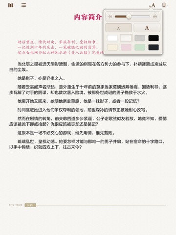 3、流畅的简洁滑动翻页,漂亮的字体,舒适的行间距段间距,带给您优质的阅读新体验!