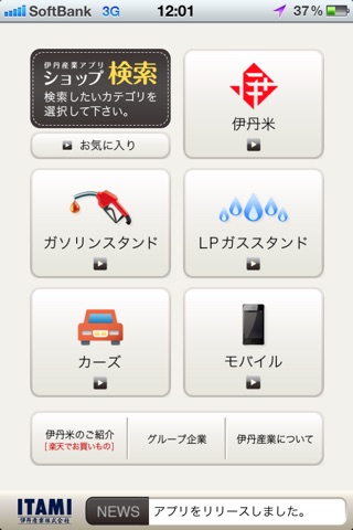 伊丹産業の各系列店舗やサービスをご利用いただける店舗を検索・案内できる iPhone 専用アプリです。