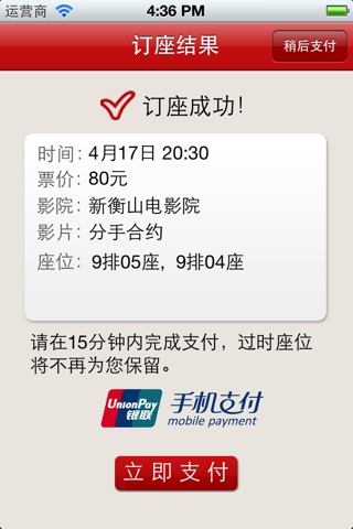 3 选择您希望的座位,确认订单并支付;