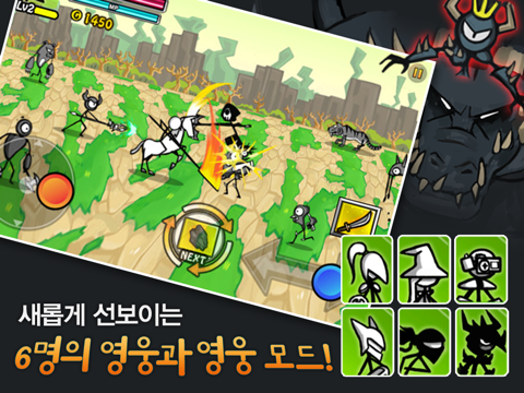 - 스탯 분배 및 스킬 추가 등으로 나만의 히어로 육성 가능