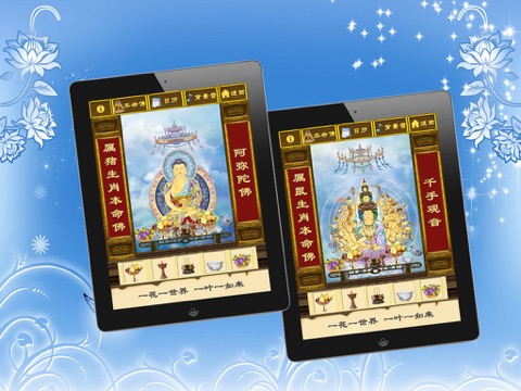 ----内有12属相的本命佛,功能包括给本命佛贡香、贡水、贡花、供果、贡灯,随时随地烧香、供佛、拜佛、祈福,为家人朋友求平安保健康。