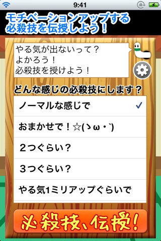 このアプリは全国のみなさんの『モチベーションをアップするため』のアプリです。必殺技で、ちょこっとモチベーションが上がります。