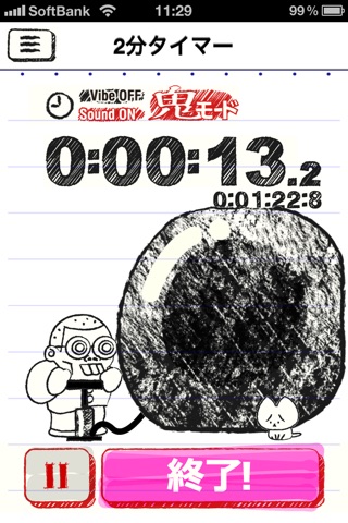 各ボタンを押すと時間が短縮されます。それぞれ、通常設定時間から