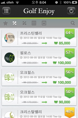- 할인가격의 골프장 정보제공