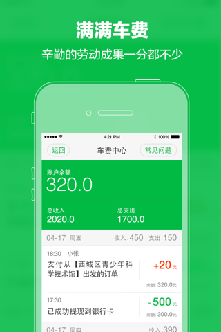 • 智能的打车信息推送方式, 让你不错过每一笔生意.