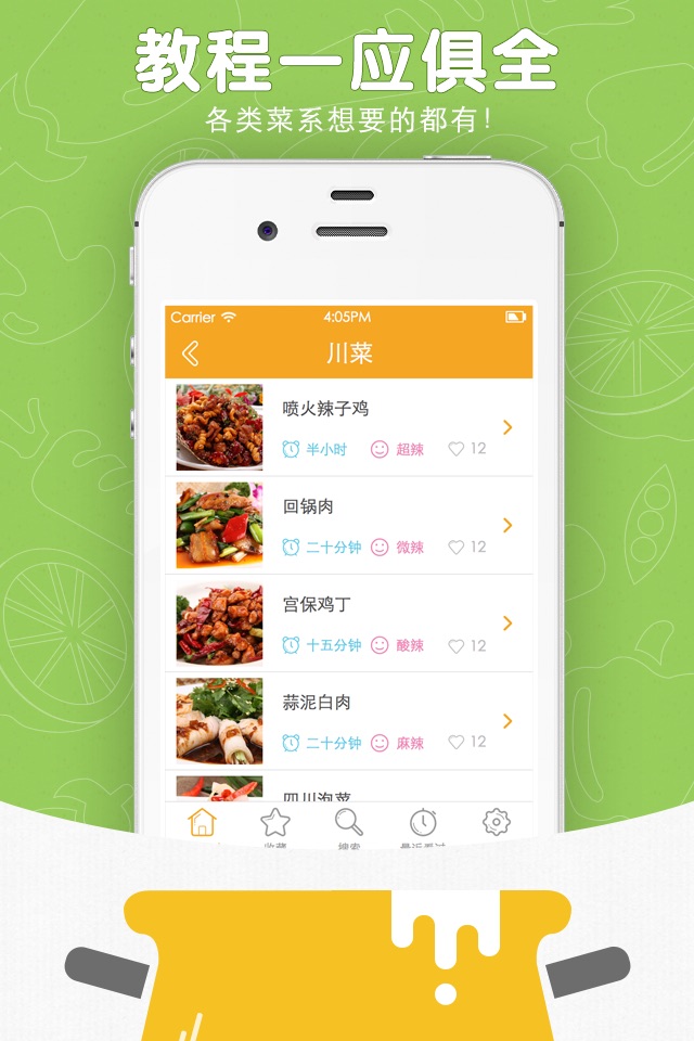 汇集各式菜谱:中、西餐,小吃,糕点,早餐,甜点,热、凉菜,儿童、孕妇、老人菜谱,川,粤,湘,鲁,浙,闽,徽,美容养颜,食疗养身,素、肉食,统统在内!