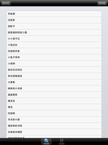 - 视频故事:精选了世界著名的27个经典童话故事,以宝宝喜爱的卡通动画来讲述故事的精彩内容,并引导孩子进行思考和想象,打开宝宝们善良、诚实的心扉,培养宝宝热爱生活、机智勇敢的信念。