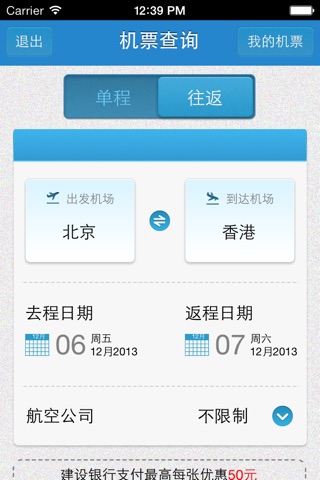 2.支持单程、来回程、缺口程等最多6段复杂行程的运价搜索;