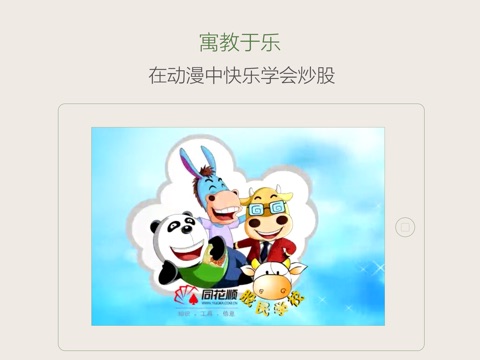 2:同花顺重金打造的炒股学习动画片“ 股林外传”:寓教于乐。与故事中的主人公驴妈、熊仔和牛叉一起体验炒股过程中的酸甜苦辣。