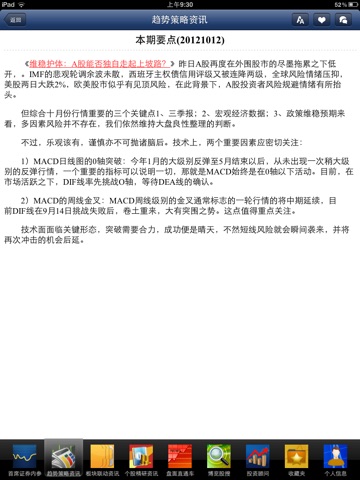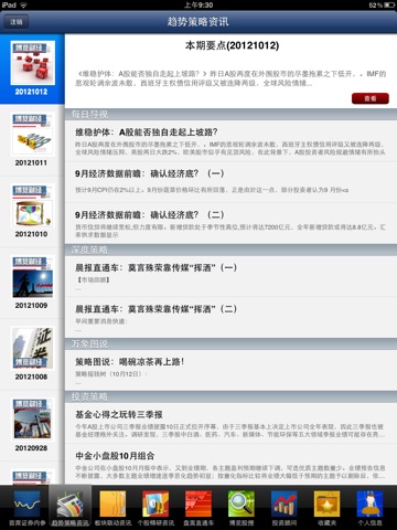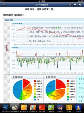 配置4大金融决策及监管高层必备的宏观日刊:首席证券内存、趋势策略资讯、版块联动资讯、个股精研资讯。通过科学的资讯配置,让股民用户快速的获得负责任的权威资讯,帮助股民用户对政策、股市行情资讯进行深入分析,最终做出符合正确判断。