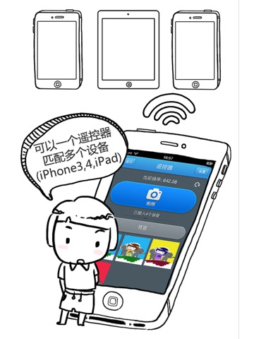 无论距离多远都可以用一个iPhone遥控另外一个iPhone/iPad拍照!还可以把照片下载回来哦!