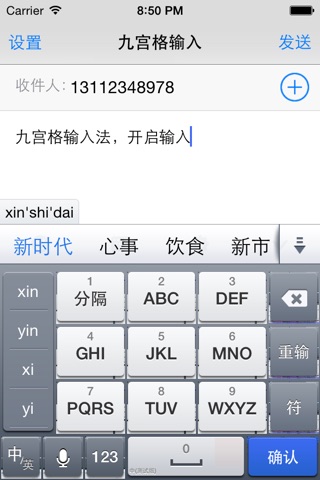 >九宫格输入法:汉字输入快手,快速发送短信、发邮件、发微博。