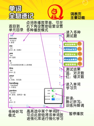 方便学习者听录音时在练习本上进行传统的听写,也可以在iPhone/iPad上输入生词,由机器判断正误。
