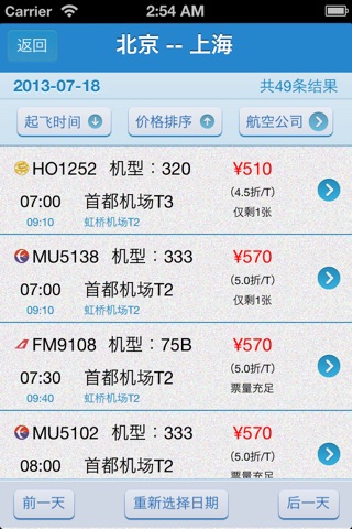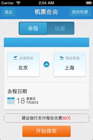 主要功能:国内航班及票价信息的查询。