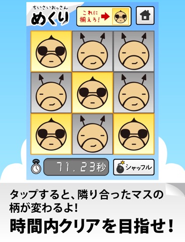 マスをうまくタップして、制限時間内に指定の絵柄に揃えよう!